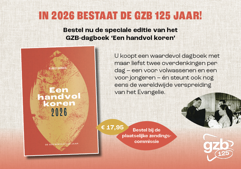 In 2026 bestaat de GZB 125 jaar. Bestel nu de speciale editie van het GZB-dagboek 'Een handvol koren'. Voor voorbeeldoverdenkingen klik hier. Om het dagboekje te bestellen klik hier.